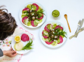 Kohlrabi & Chioggia Beet Carpaccio with Avocado Mayonnaise ||| Carpaccio de couve rábano & beterraba Chioggia com mayonnaise de abacate
